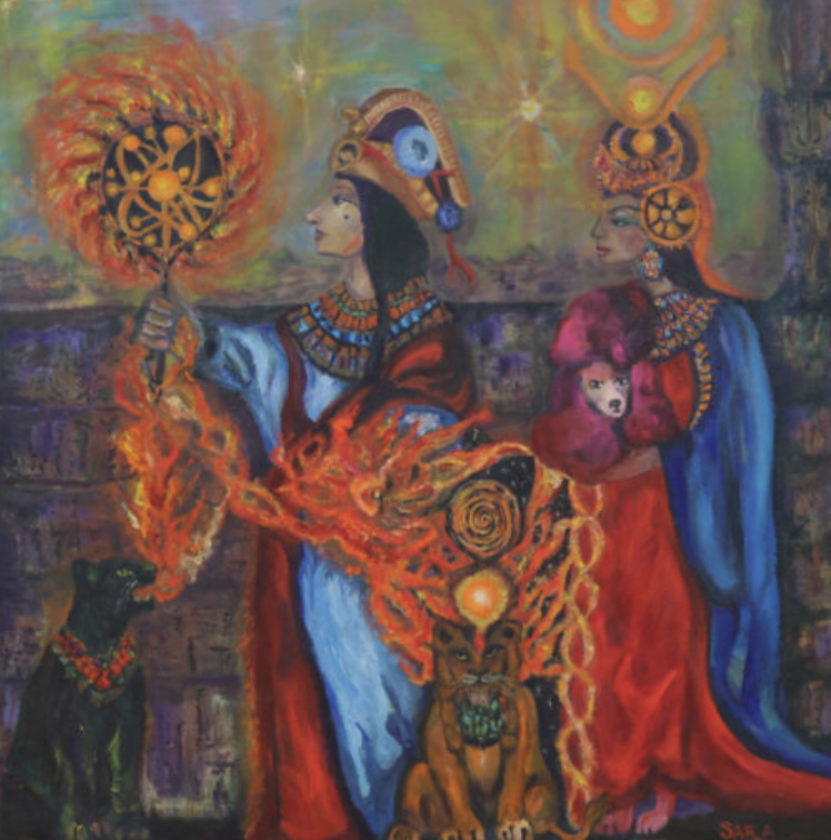 Sara Thorn is an artist and designer, originally from Melbourne, Australia. Working across diverse mediums. Her ongoing exploration of the intersections between mythology, dreamscapes, divine feminine archetypes, and visual storytelling is through painting and textile-based media. Previously known for her work as a textile and fashion designer, Sara has exhibited internationally and conducted workshops globally on creativity and the sacred arts.