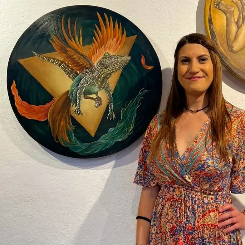Through watercolor and oil painting, she explores a dreamlike and symbolic universe where animals and archetypal figures emerge as carriers of emotion, memory, and inner landscapes. Her work blends elements of mysticism, surrealism, and introspection.